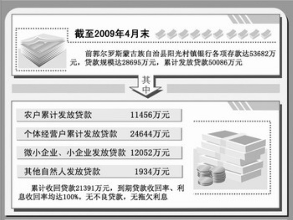 前郭尔罗斯蒙古族自治县阳光村镇银行相关负责人介绍说,该行围绕“三农”的金融服务与时俱进,通过不断创新信贷产品、创新服务模式,与“三农”共命运,实现银农、银政共同发展是阳光村镇银行组建的目标。为此,前郭尔罗斯蒙古族自治县阳光村镇银行组成多个工作组,自带设备,逐村、逐户到农户家里办理贷款手续、复印材料,方便农民贷款。