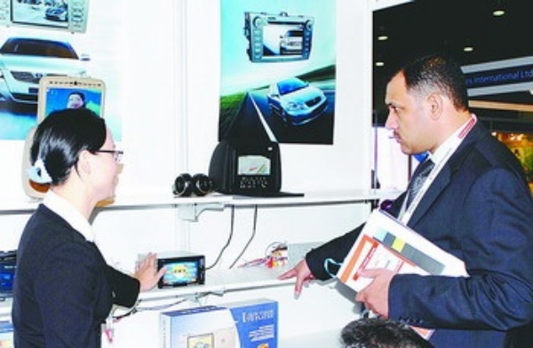 2009迪拜中国商品采购交易会于本月14日在迪拜国际展览中心对公众开放。与往届展会不同的是,本届参展中国商品不再局限于传统工艺品、生活日用品和服装等低附加值产品,质优价廉的中国手机、GPS设备和电脑等IT创新产品成为当地参观者关注的热点。图为深圳一家厂商展出的车用娱乐多媒体及GPS导航设备吸引了当地客商前来咨询洽谈。 本报驻阿布扎比记者 经 凯摄影报道