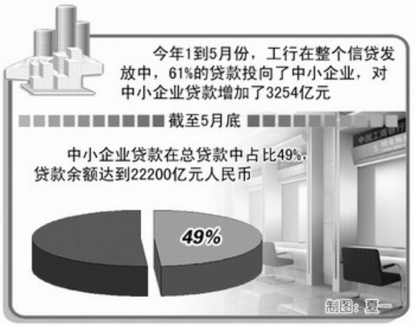 今年1至5月份,工行加大了对中小企业的扶持力度,在整个信贷发放中有61%的贷款投向了中小企业,对中小企业贷款增加了3254亿元。各分、支行纷纷行动起来,加大力度创新信贷产品,满足了各地中小企业的融资需求。