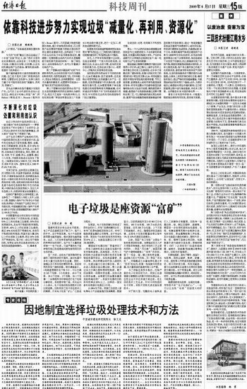 依靠科技进步努力实现垃圾“减量化、再利用、资源化”