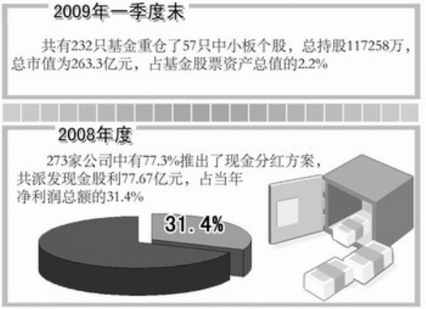 不论是对中小投资者还是对机构投资者,中小板上市公司的回报率都非常可观。在监管部门的政策引导下,中小板上市公司形成了重视现金分红的传统。2008年度,273家公司中有77.3%推出了现金分红方案,共派发现金股利77.67亿元,占当年净利润总额的31.4%,其中17家公司现金分红超过1亿元。