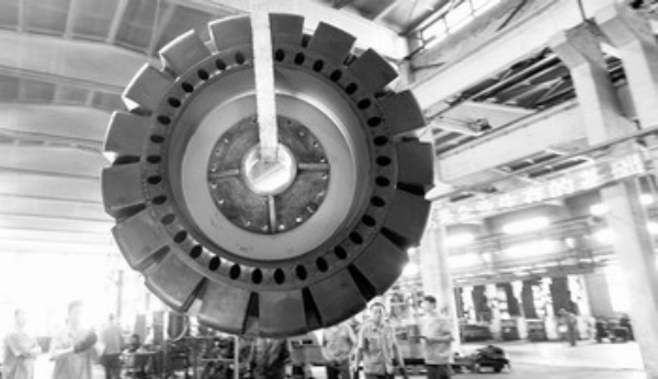 6月10日,在山东烟台中策橡胶有限公司生产车间,吊车将刚“出壳”的特大辐板式实心花纹轮胎吊起。 当日,一个直径1.78米、重达2吨的特大辐板式实心花纹轮胎在山东烟台诞生。这个实心轮胎由山东烟台中策橡胶有限公司自主研发生产,其特点是橡胶原料的消耗比传统实心轮胎减少40%至50%,同时轮胎寿命大大延长。据悉,该型号轮胎产品已被美国重型工程和起重设备制造
