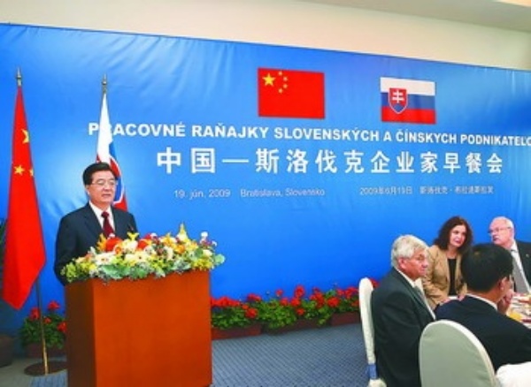 胡锦涛在早餐会的致辞中指出,今年是中斯两国建交60周年。60年来,中斯关系经受住了各种各样的考验。尤其是斯洛伐克独立后,两国关系快速发展,两国经贸合作不断扩大。斯洛伐克已经成为中国在中东欧地区重要经贸合作伙伴。