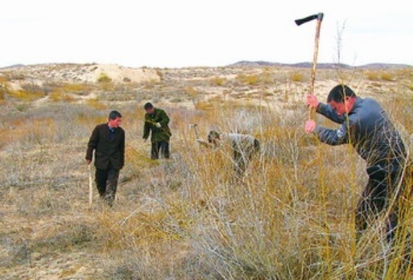 左图 敖汉旗当地林农正在对林地进行平茬复壮。