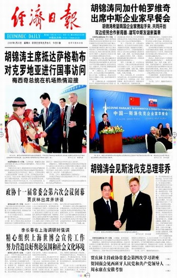 胡锦涛同加什帕罗维奇出席中斯企业家早餐会