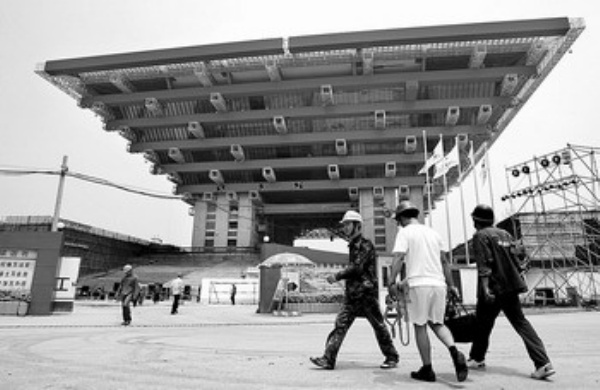 目前,上海世博会中国馆上部冠型结构外立面“红衣”已经基本“穿戴”完毕,整个中国馆外立面红色装饰板安装工程预计将于7月底全部完工。据上海世博会事务协调局副局长丁浩介绍,中国馆墙体最终披上的“中国红”,象征着“热忱、奋进、团结”的民族品格,可以视为对“中国红”概念的经典诠释。