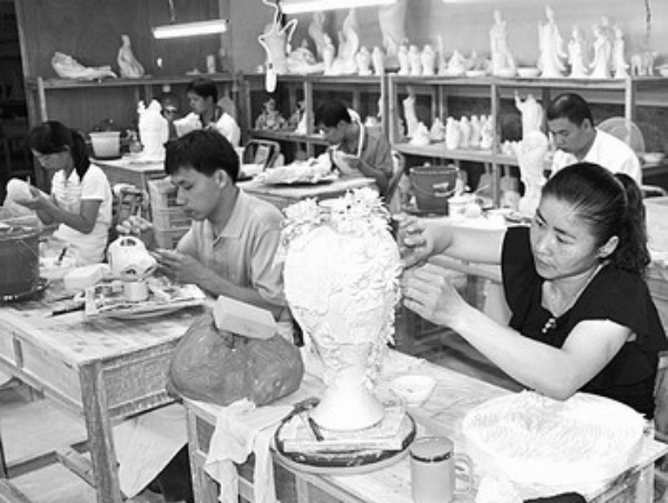 在“鼎晟艺瓷”生产车间,技术人员正在制作陶瓷新品。 (资料图片)