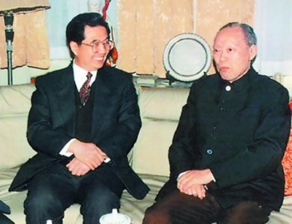 图1 一九九四年十月,胡锦涛同志看望董寅初同志。