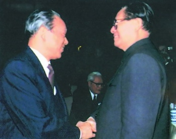 图6 一九八八年十二月十八日,中国致公党第九次全国代表大会在北京闭幕,董寅初同志(右)当选为致公党中央主席。