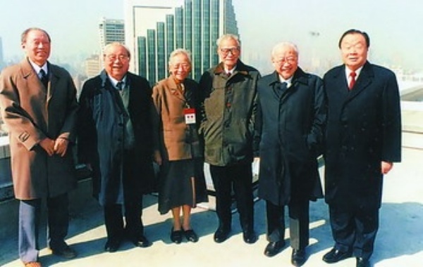 图7 一九九五年十一月,董寅初同志(左一)与其他民主党派领导人和无党派代表人士在上海市考察工作。 (照片均为新华社发)
