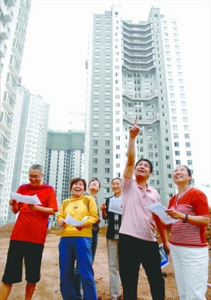 图1 在市南区云南路街道办事处邹县路社区改造安置房建设工地,居民们对即将入住的新居充满憧憬。市南区把旧城改造作为一项重大的民生工程,融资41亿元用于拆迁改造,使居民居住环境得到极大改善,居民们也越来越关注街道的全面建设与发展。