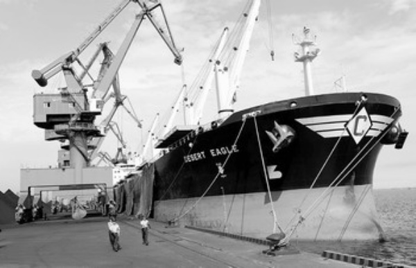 7月2日,唐山边防检查站的官兵在唐山港散货码头巡逻。 截至6月30日,唐山港2009年上半年吞吐量达7774万吨,同比增长43.3%,创历史新高。 新华社记者 杨世尧摄