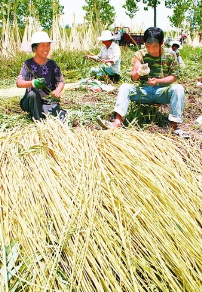 7月2日,郯城县沙墩镇农民正在收获杞柳。 盛夏时节,被誉为“中国杞柳之乡”的山东省郯城县10万亩杞柳喜获丰收。当地农民把柳条加工成工艺品出口日本、美国、加拿大等20多个国家和地区,年销售收入达5000多万美元。杞柳是一种落叶灌木,枝条可用来编制器物。郯城柳编是山东省著名的传统工艺品。 张春雷摄(新华社发)