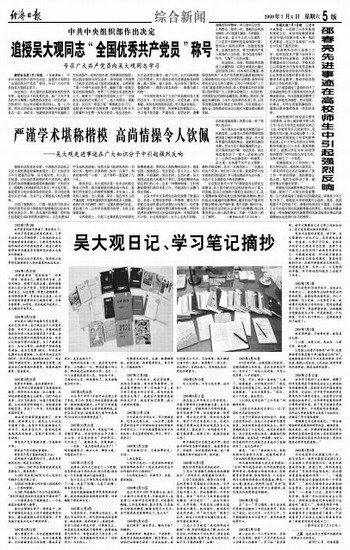 报国有成的党员专家、中国航空发动机之父吴大观的事迹经媒体报道后,在广大知识分子中引起强烈反响。吴大观对党、对人民、对祖国、对社会的高尚情怀和不求名利、虚怀若谷的高尚情操深深感染和激励着广大知识分子。两院院士和高校师生们表示,学习吴大观,就是要学习他对崇高信仰的追求,学习他在挑战中矢志不渝,为共产主义理想奋斗终生的精神。