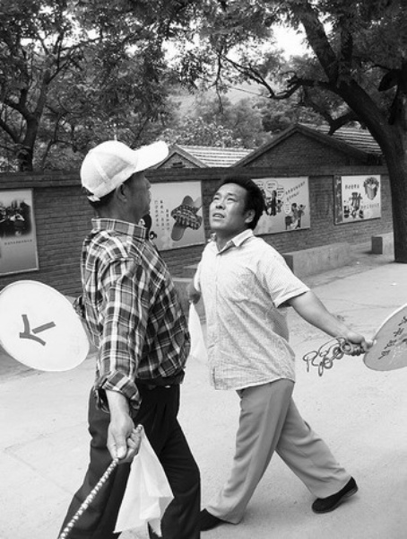 图4:李根国(右)和搭档刘如意在街头表演太平鼓。 马洪超摄