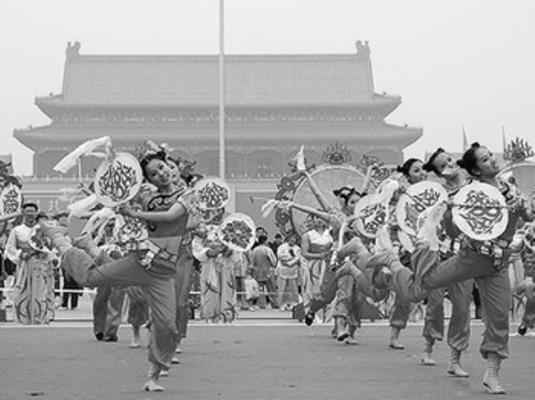 图5:2006年4月,大峪二小的小学生在天安门广场参加演出活动。