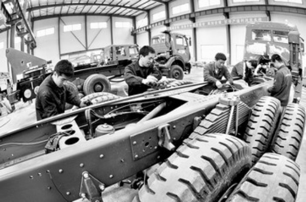 7月6日,辽宁抚顺起重机制造有限公司员工们正在加班作业赶订单。该公司围绕市场需求调整产品结构不断开发新产品,截至6月底,该公司已签约订单额7900余万元,同比增长近70%。 张 薇摄