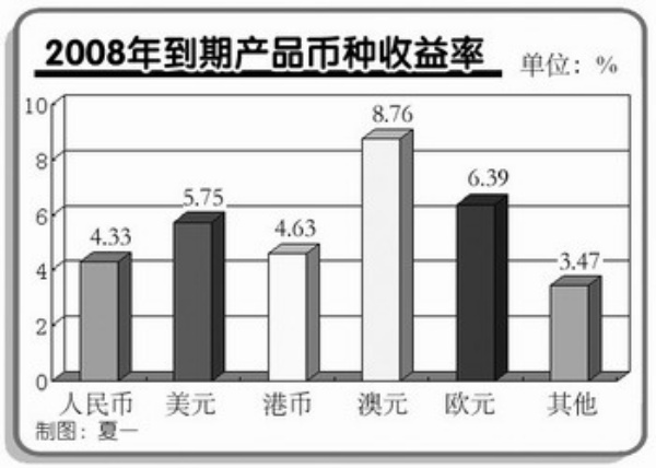 据中国社科院金融所理财研究中心分析,在2008年,银行理财产品总体平均收益水平远高于定期存款利率、CPI涨幅和上证指数的表现,更不乏有年收益率高达30%的产品。更可喜的是,因其稳健和灵活的特质,银行理财产品的发行数量和募集资金也再创历史新高,募集资金超过了其他委托理财产品募集资金的总和。2008年56家商业银行共发行银行理财产品4456款,远高于2007年的发行数量,人民币产品居于主导地位,共发售3343款。