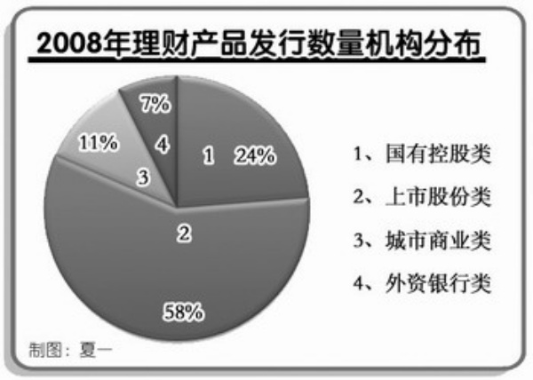 回顾近两年的银行理财市场,2007年,中资银行是银行理财产品发展的最主要推动者,发行的理财产品数量占当年全部产品的近90%,远远高于外资银行,而上市股份制银行又是其中的主力,其产品份额占到一半以上。