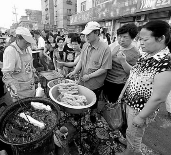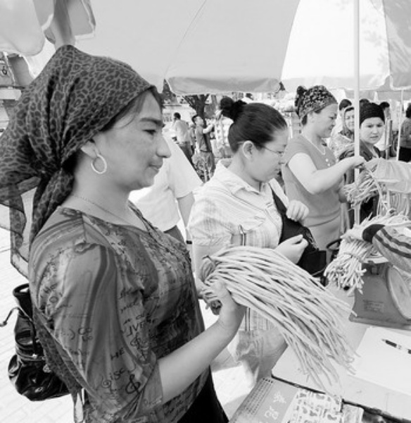 下图 7月10日,乌鲁木齐市民在建工巷早市购买早点。