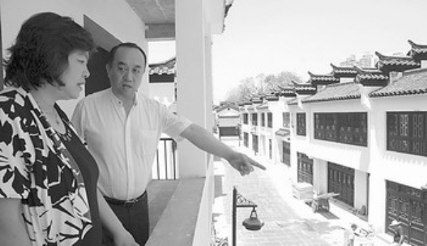 图2:在南开长虹公园东侧、总面积7000余平方米的江南风情一条街项目已基本完成。张永利租下了近400平方米的店铺,“石头门坎素包店”即将正式入驻。一有空闲,他就会和妻子一起到这看看。