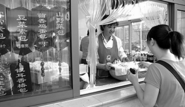 图3:随着商业的繁荣,天津提升改造和新建了多处特色商业街。在新近改造完成的辽宁路小吃街,“石头门坎”也开张了自己的售卖亭,日销售额近万元。石头门坎素包有浓郁独特的素香味,以前深受中老年人喜欢,现在也很受年轻人欢迎。
