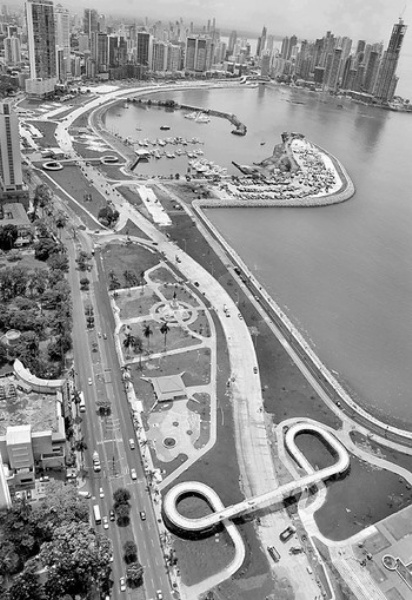 2007年底开始动工的巴拿马城滨海大道风景带工程将于近期竣工。它将成为巴拿马城的标志,也将成为游客必到的景点之一。该工程耗资1.89亿美元,填海造陆35公顷,其中包括公路、高架桥、人行道、公园绿地、球场和停车场,是巴拿马近年来最大的基础设施建设工程之一。图为巴拿马首都巴拿马城滨海大道风景带。 新华社发