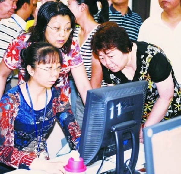 7月15日,新疆高考本科一批次录取工作并没有因为乌鲁木齐“7·5”事件而推迟。在新疆高考“录取现场开放日”工作现场,160多名来自乌鲁木齐市、昌吉回族自治州的考生、家长、教师代表走进设在新疆维吾尔自治区招生办公室的录取工作现场,查看录取情况;