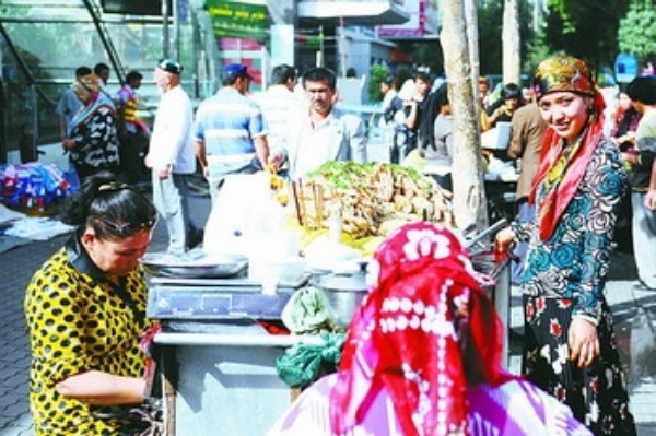图3:一名维吾尔族女孩在乌鲁木齐市二道桥地区卖小吃。