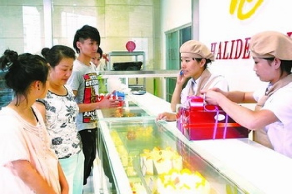 图4:市民在乌鲁木齐红旗路哈立德蛋糕店选购食品。