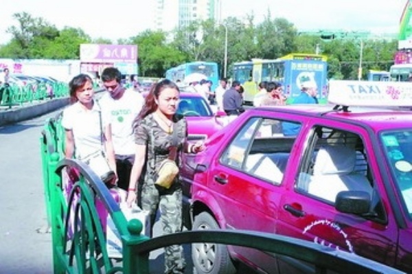 图5:乌鲁木齐火车站,乘客出站准备乘出租车。