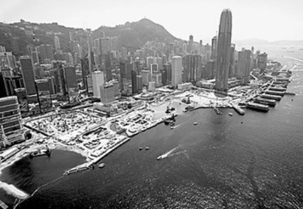 下图:由中国建筑股份有限公司承建的香港中环填海三期工程。 资料图片