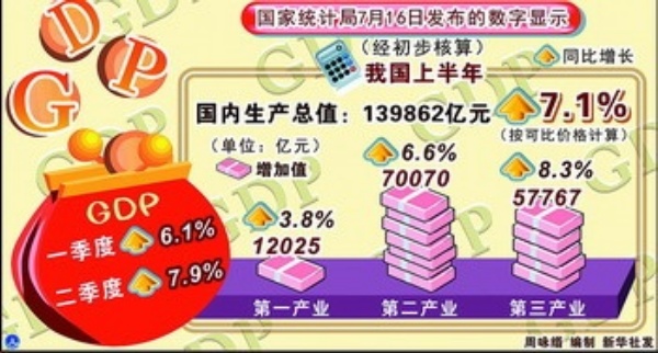 本报北京7月16日讯 记者薛志伟报道:国家统计局16日发布的数字显示,经初步核算,我国上半年国内生产总值139862亿元,按可比价格计算,同比增长7.1%,比一季度加快1.0个百分点。