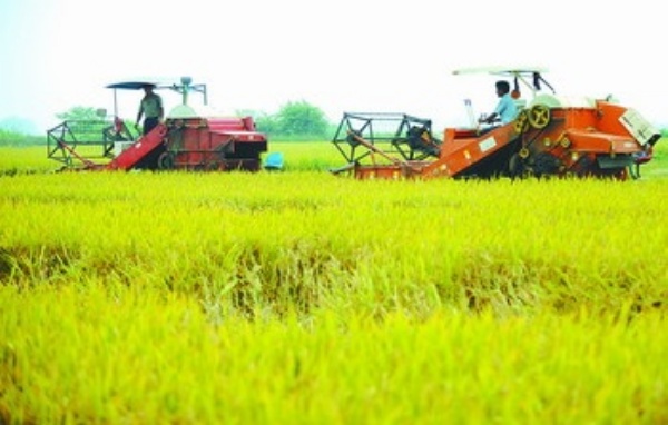 7月16日,收割机在南昌市新建县联圩乡象湖村的早稻田作业。 日前,江西省开始加紧收割早稻。今年,江西省早稻播种面积、单产、总产呈现“三增”的良好态势,预计今年全省早稻亩产平均较去年增加5公斤以上,早稻总产有望再创历史新高,实现连续6年增产。 新华社记者 周 科摄
