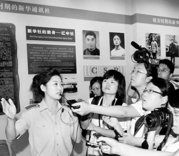 7月16日,青年编辑记者在延安新闻纪念馆参观学习。 当日,来自18家中央新闻单位的100名青年编辑记者,开始在革命圣地延安接受新闻传统教育。在为期6天的活动中,他们将通过参观、采访加培训的方式,了解党的新闻工作优良传统,接受党的新闻工作传统教育。 新华社记者 陶 明摄