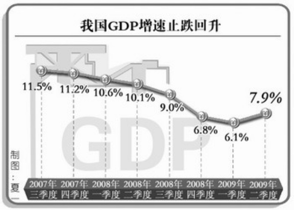 本期数据:二季度我国国内生产总值同比增长7.9%,增速比一季度加快1.8个百分点。这是我国经济自2007年三季度以来同比增速连续7个季度回落后的首次加速。二季度经济增速的明显加快,使得上半年中国经济同比增速达到7.1%。