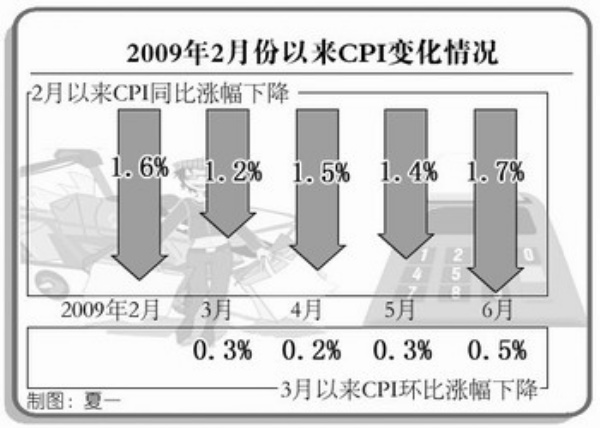 因此要分析今后价格的走势,就要从价格本身和影响价格变化的各个方面综合来看。首先我们要看到,今年以来我国居民消费价格和工业品出厂价格还一直处在下降的区间。上半年,居民消费价格同比下降1.1%,上年同期上涨7.9%,而且自2月份以来一直在下降,分别下降1.6%、1.2%、1.5%、1.4%和1.7%,并且在八大类商品中有三涨五降。从3月份以来,环比也一直下降,3—6月,环比分别下降0.3%、0.2%、0.3%和0.5%。