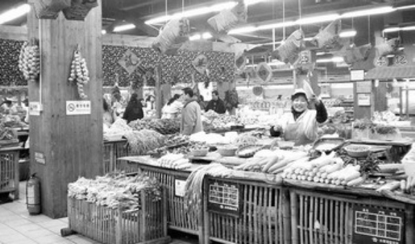 “这里原本是个集贸市场。2002年,中百把它改造成一家集超市的优雅、庙会的丰富、集贸市场的‘便宜与便利’于一体的庙会超市。”店长杨颂军说,“这里是‘农改超’的范本。”