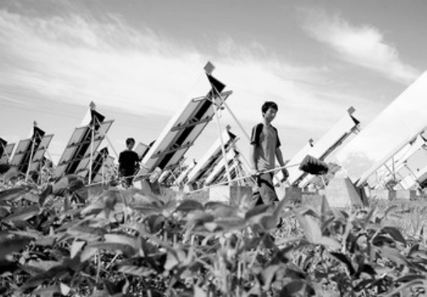 7月15日,宁夏银川经济技术开发区的太阳能光伏试验电站员工正在维护设备。宁夏发电集团投资2239万元发展太阳能产业,年发电量达68万千瓦时。目前,宁夏11个太阳能光伏并网发电项目已全部开工。 本报记者 李景录 许 凌摄影报道