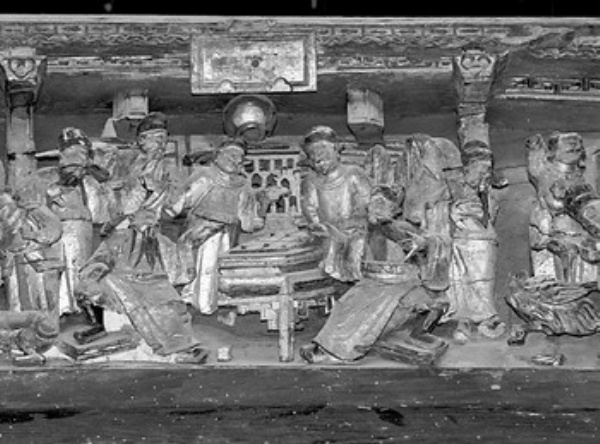图1:宏村承志堂的古徽州木雕作品《宴官图》(局部)。