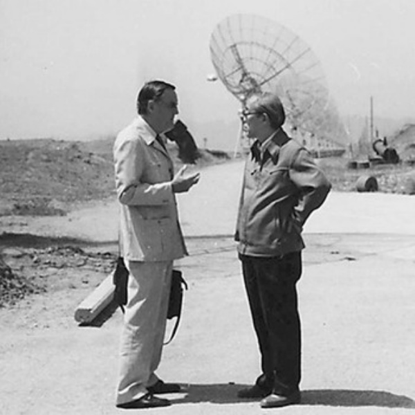 下图:王绶1985年与汉勃莱·布朗(第十八届国际天文联合会主席)在密云射电天文工作站。