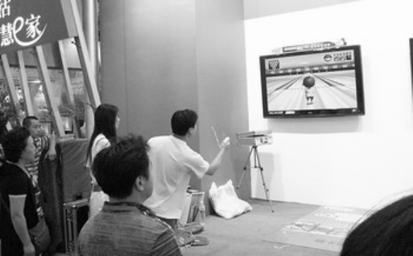 家住青岛市南区的郑睿想买台电视,在家电商场海尔摊位,一款可与人互动的模卡电视让他眼前一亮:他拿起遥控器,在讲解员的指点下,对着电视玩起了高尔夫球、钓鱼、赛马等游戏,还观看了一段直接从网上下载的高清大片《功夫熊猫》,看到画面清晰到熊猫的每根毛发都通透发亮时,他惊叹道,“这模卡电视跟传统的电视截然不同!”