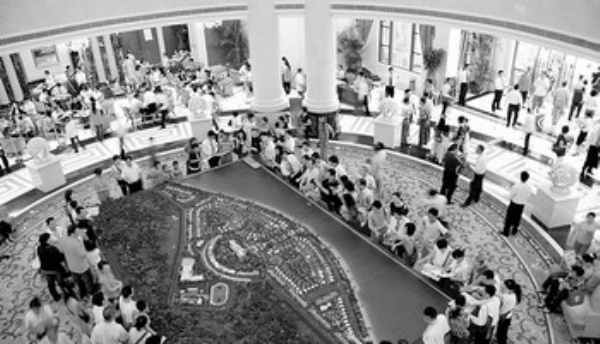 下图:由恒大地产开发的广州清新天下楼盘开盘现场