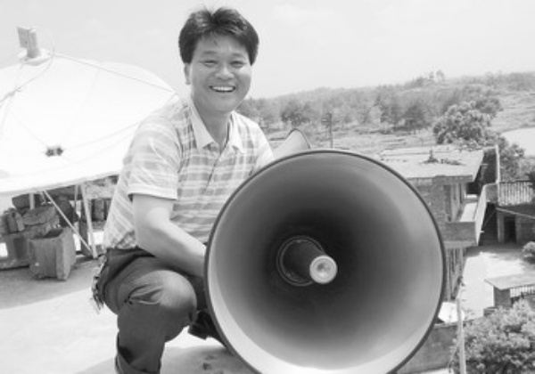 7月6日,江西省信丰县大塘埠镇新龙村正在安装大喇叭。为推进农村政策、科技的宣传,信丰县投资5万多元,在大塘埠镇的4个新农村建设点安装了4台新型自动化IP无线数字广播,开始了大喇叭进村试播工作。每天早、中、晚的广播内容包括新闻、农业科普知识、新农村建设信箱等广播节目,深受群众欢迎。
