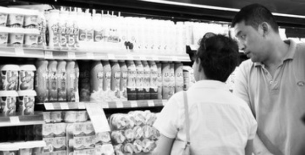 上图为顾客正在超市选购乳制品。本报实习生 刘 婷摄