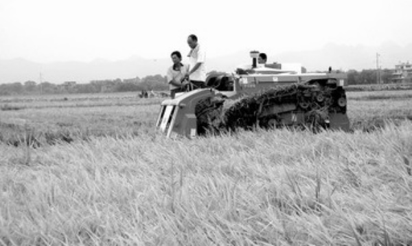 江西兴国县潋江镇澄塘村农民正在收割水稻。 为确保早稻及时收割、晚稻及时栽插,兴国县调集了总功率31.5万千瓦的农业机械投入“双抢”。目前,江西各地正掀起农机“双抢”生产热潮,确保粮食颗粒归仓。 刘厚锋 宋莉萍 摄影报道