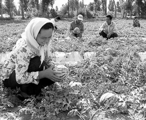 7月13日,甘肃玉门市柳河乡官庄子村村民在采摘西瓜。今年,玉门市不断加大瓜类优势产业的种植力度,努力增加农民收入,目前种植的2.5万亩西瓜已陆续成熟上市,60%销售到沿海城市和周边县市。 本报记者 李琛奇 通讯员 方 圆摄影报道