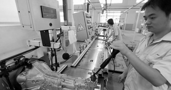 | 7月6日,江西赣州经纬汽车零部件有限公司员工在生产流水线上调试AMT自动变速器。