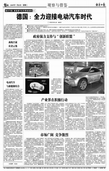 ●在2007年制定的“高科技战略”中,德国政府已将电动汽车的关键技术————锂离子电池作为攻坚项目。产业界五大巨头巴斯夫、博世、EVONIK、LiTec、大众和科学界与应用界的60家单位结合,组建了锂离子电池“创新联盟”。
