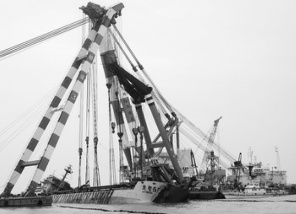这是我国继打捞黄浦江万吨挖泥船“银锄”轮、天津港万吨挖泥船“奋威”轮之后对大型沉船的又一次成功打捞。
